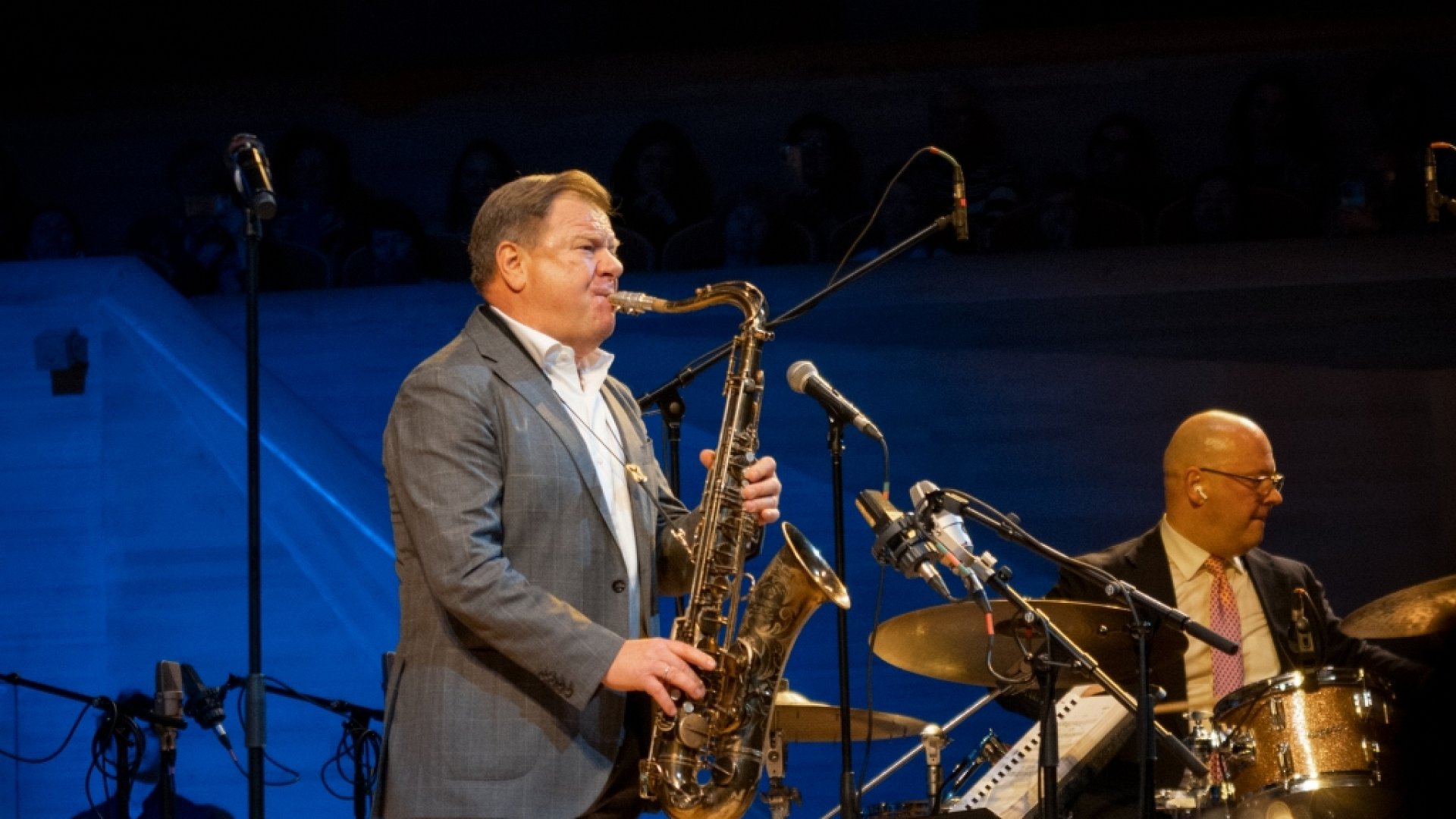На концерте ведется телевизионная съемка.